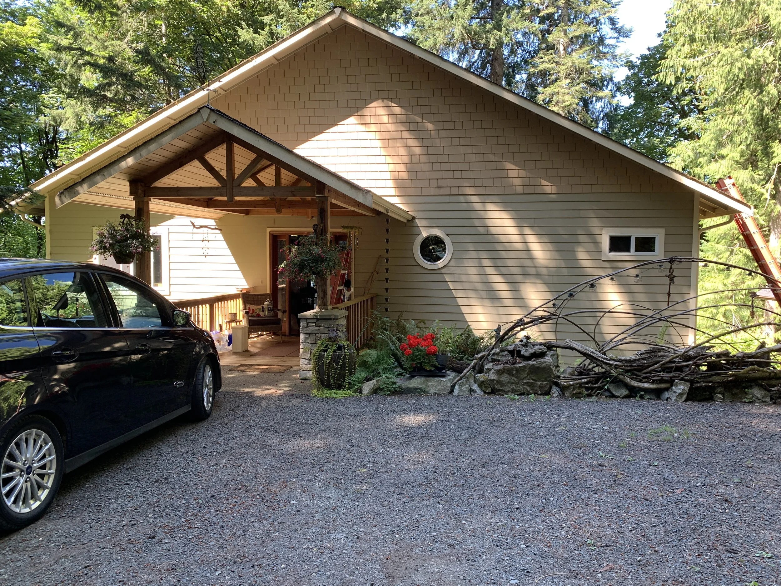 Park in front of the house head in facing the front door and wait in your car. You can text me at 360-480-0342 when you arrive and I will come out and get you. We will be walking down a short gravel hill (a few yards long) to the left of the house- there are no stairs.
